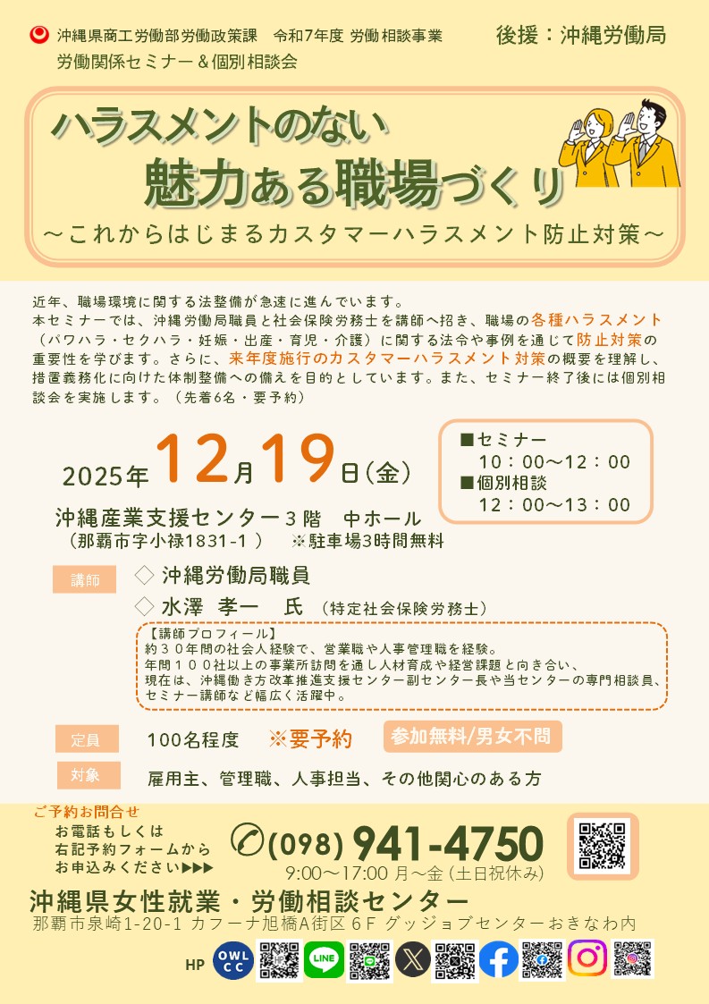 【グッジョブセンターおきなわ/沖縄県女性就業・労働相談センターより セミナーのご案内】