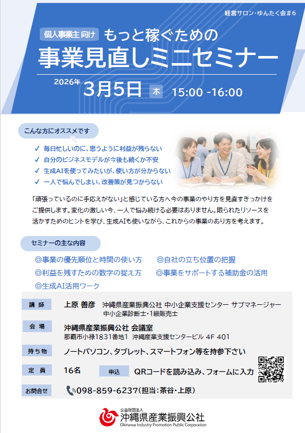 【沖縄県産業振興公社よりご案内】事業見直しミニセミナーの開催